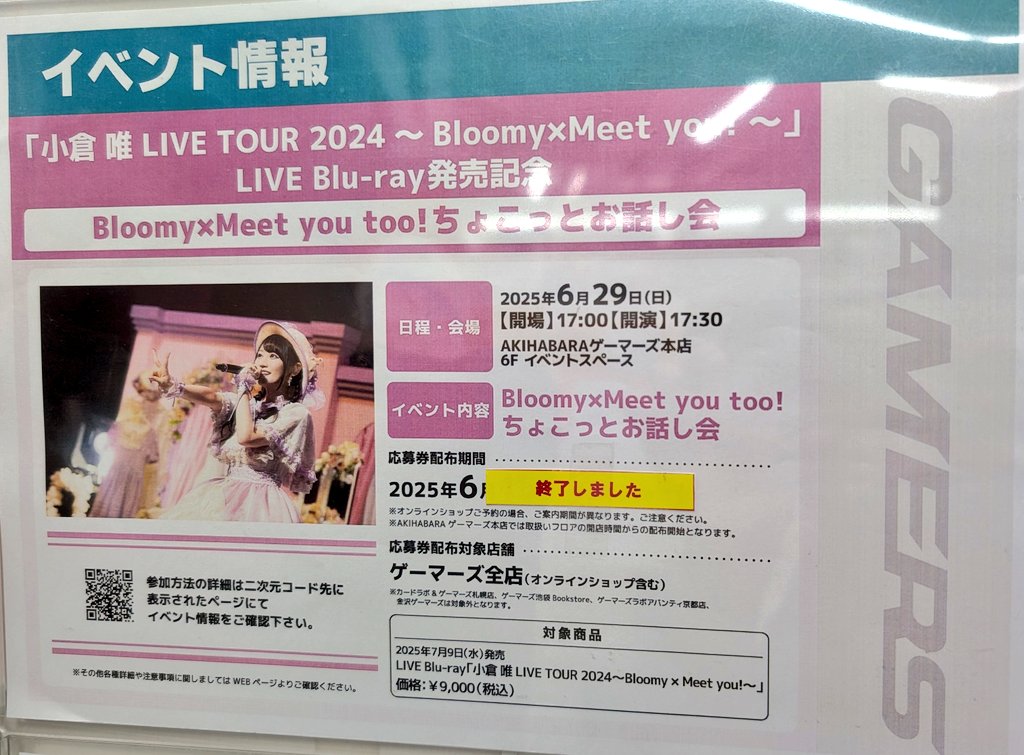 「小倉 唯 LIVE TOUR 2024~Bloomy×Meet you!~」LIVE Blu-ray発売記念Bloomy×Meet you too!ちょこっとお話し会